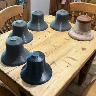 The plan is for a fixed ring of 12 bells, tenor weight 25-28 lbs. in F, with the back 8 also being portable. The ring will be based in my garage, with the bells mounted in the roof space and rung from the ground.