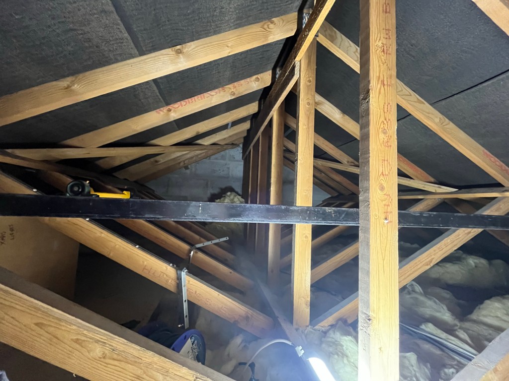 There is not much to see in situ at present, the most visible sign being some tentative holes in the garage ceiling for some of the ropes to pass through. The roof timbers, which will form the bell frame, have been strengthened; and plans for positioning and mounting of the bells decided.